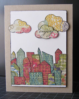 I stamped the Hero Arts Silly Scape stamp on three different Crate Paper Restoration collection papers and pieced them together. I love the texture that technique gives.